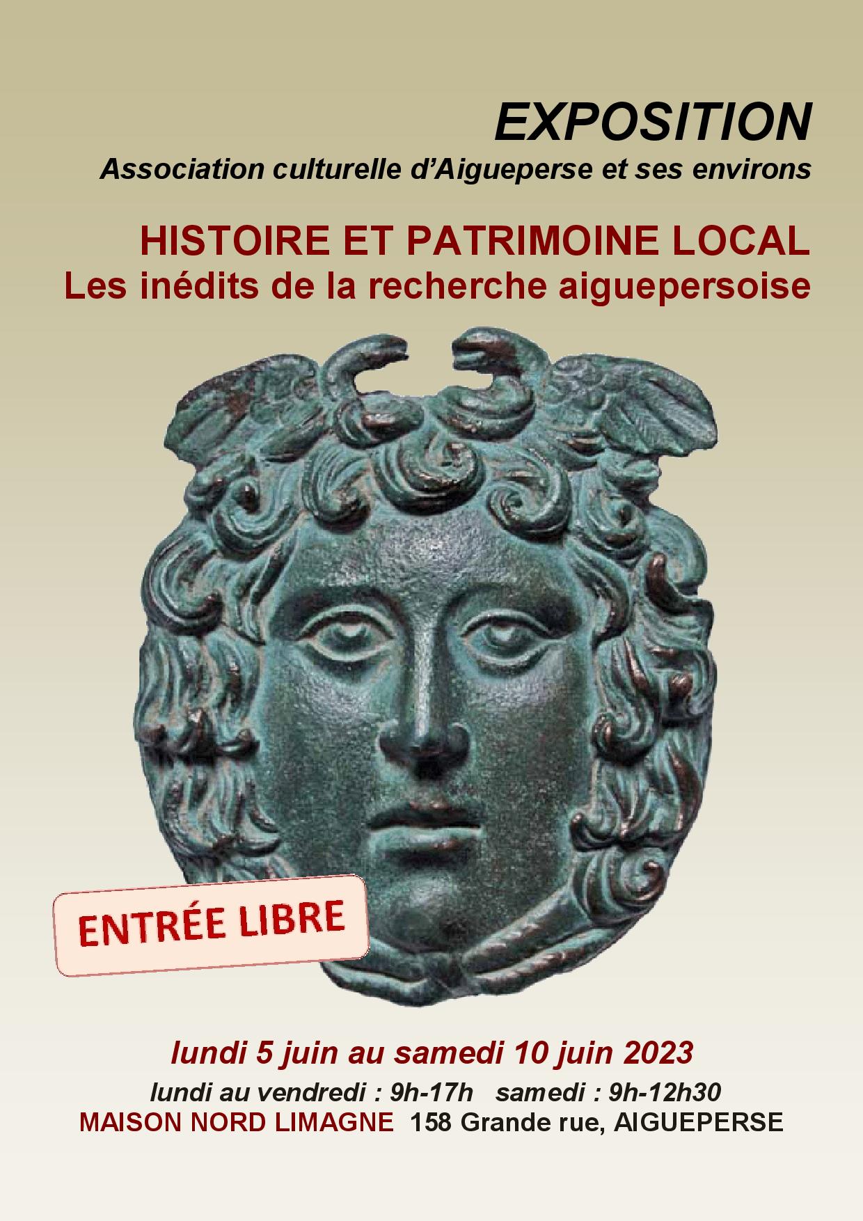 L’ACAE célébrera ses 45 ans avec une exposition du 5 au 10 juin à la salle des expositions de la Maison Nord Limagne, sur le thème « Histoire et patrimoine local. Les inédits de la recherche aiguepersoise ». Le 11 juin sera une journée réservée aux adhérents avec un repas et une visite d’Aigueperse.