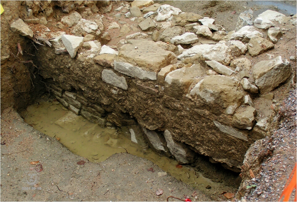 À l’extrémité Est de ce même bâtiment, furent mis au jour des éléments du rempart de ville. D’une grande importance pour la sécurité de la ville, afin de renforcer la muraille les constructeurs l’avaient fondée sur des arcs de décharge espacés de façon régulière. Ils se repèrent nettement dans ces fouilles.