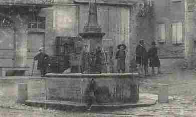 La fontaine à J. Delille au centre de Chanonat (détail d’une carte postale ancienne, arch. privées).