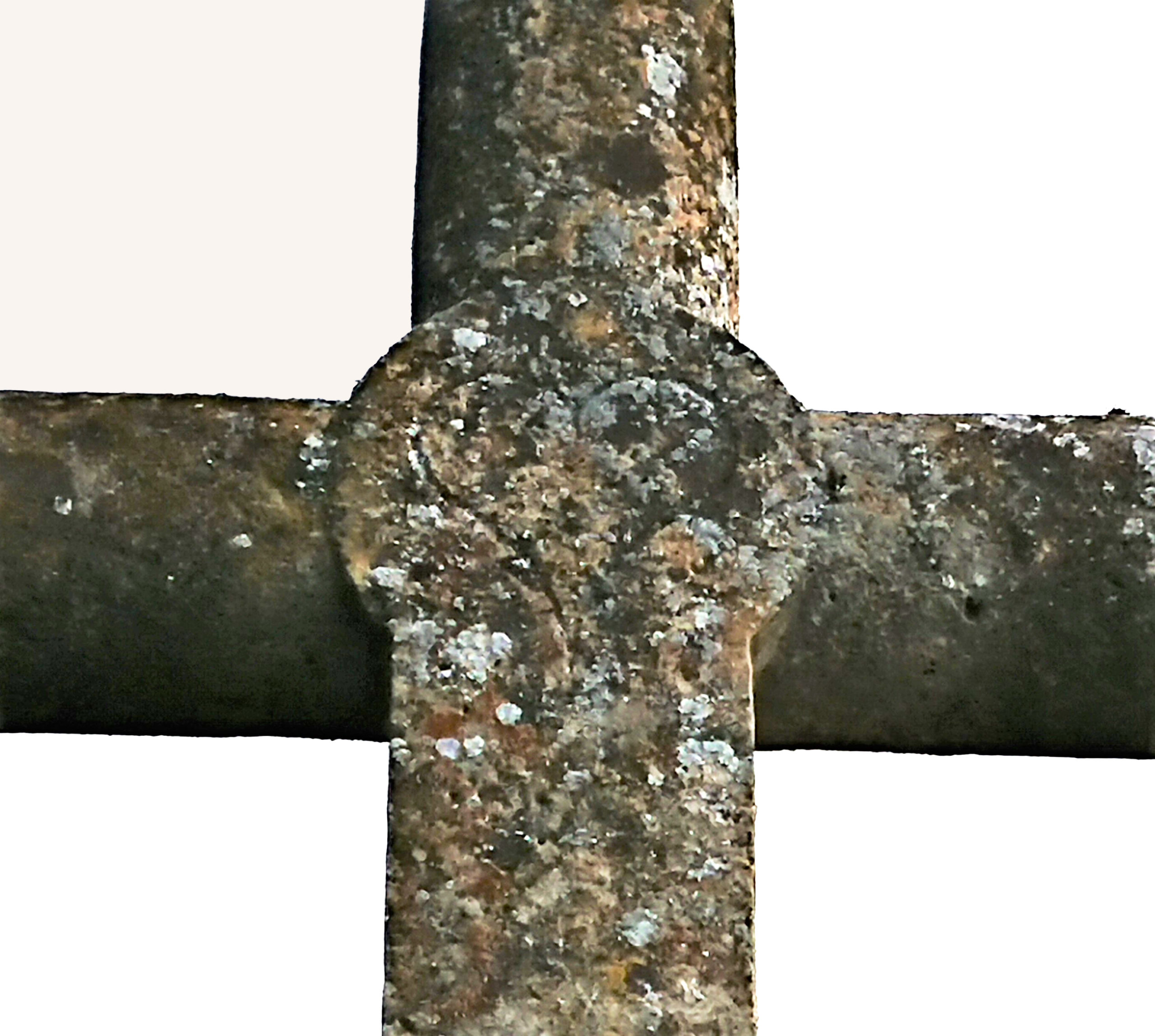Le cœur gravé au centre de la croix correspond donc à cette dévotion ; il est à la place du cœur de Jésus cloué sur la croix.