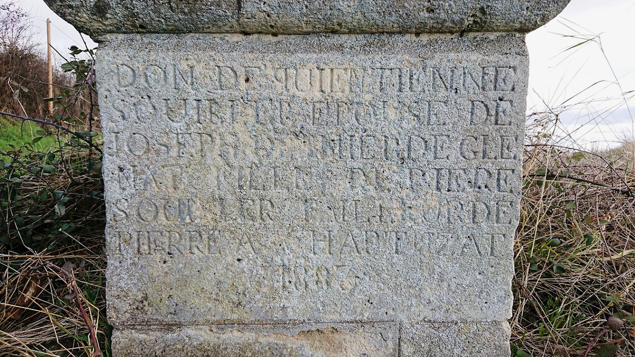 L’édification de cette croix est, bien entendu, un acte religieux. Les croyants souhaitent ainsi demander pardon pour leurs péchés et se repentir. Mais, en 1883, date de pose de la croix, Quintienne Soulier était âgée (75 ans) et elle voulait aussi certainement marquer dans la pierre les noms des deux hommes de sa vie, son père et son mari. Une autre Saint-Valentin !