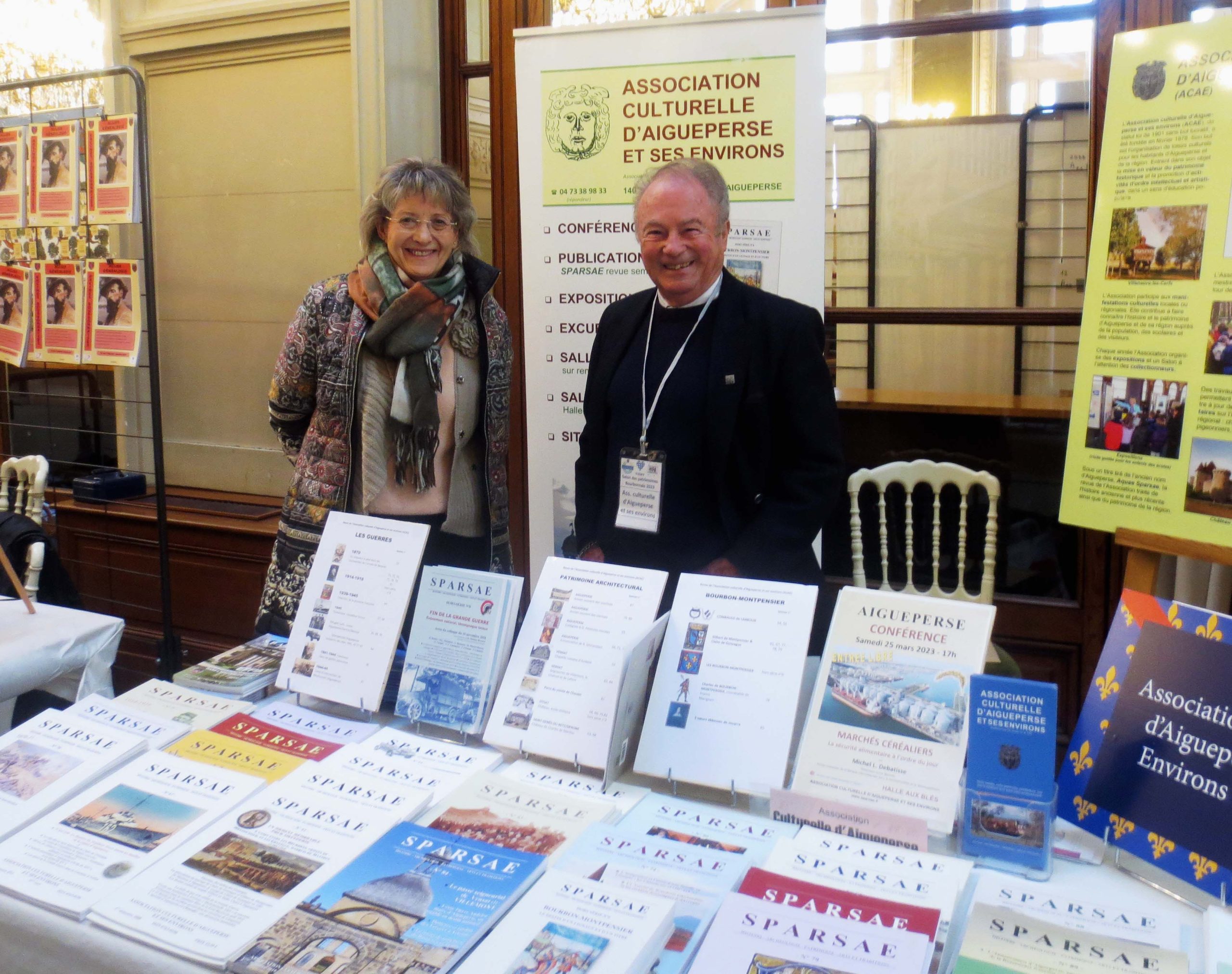 Les 4 et 5 mars 2023, l’Association culturelle d’Aigueperse et ses environs (ACAE) était présente au Salon des patrimoines bourbonnais qui, après Moulins s/Allier en 2022, se tenait cette année à Vichy.